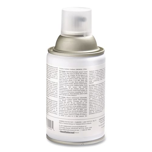 Refreshes any washroom with an invigorating scent. This commercial air freshener refill offers 90 to 180 days of maximum odor control distributed in a fine dry mist with 63% fewer VOCs per spray than standard aerosol refills. For use with the Rubbermaid Commercial Microburst 9000 Aerosol Air Freshener dispenser (sold separately).