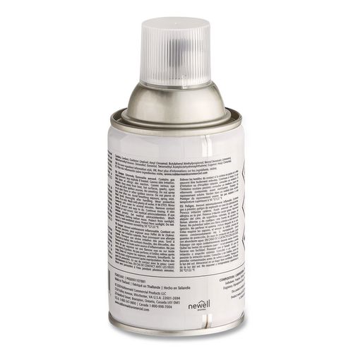 Refreshes any washroom with an invigorating scent. This commercial air freshener refill offers 90 to 180 days of maximum odor control distributed in a fine dry mist with 63% fewer VOCs per spray than standard aerosol refills. For use with the Rubbermaid Commercial Microburst 9000 Aerosol Air Freshener dispenser (sold separately).