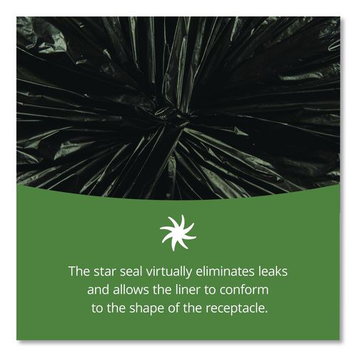 Stout by Envision's total recycled content can liners are engineered for strength and sustainability! Crafted entirely from recycled linear low density plastic, these can liners offer superior puncture and tear resistance, ensuring your peace of mind with every use. Ideal for home, office and industrial applications. Experience the ultimate combination of durability and sustainability solutions with our premium recycled plastic can liners.