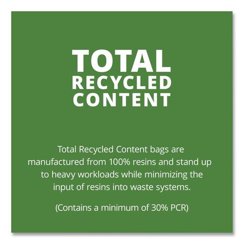 Stout by Envision's total recycled content can liners are engineered for strength and sustainability! Crafted entirely from recycled linear low density plastic, these can liners offer superior puncture and tear resistance, ensuring your peace of mind with every use. Ideal for home, office and industrial applications. Experience the ultimate combination of durability and sustainability solutions with our premium recycled plastic can liners.